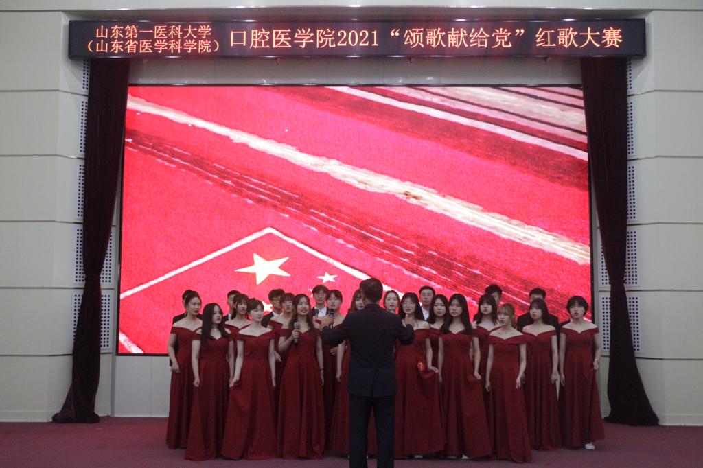 大赛在开场舞《九儿》中拉开序幕,优美的舞姿带给我们一场视觉盛宴。随后是医药管理学院带来的《少年》,阳光向上的语句调动了全场的气氛,展现了新时代青年的希望、力量和信仰;公共卫生与健康管理学院带来的《强军战歌》铿锵豪迈、意气风发,让我们坚定“强军”信念;放射学院演唱的《灯火里的中国》描绘了一副阳光满路、温暖如初的新征程壮美画卷;基础医学院的《映山红》点燃了火红的瑰丽青春;口腔医学院的《把一切献给党》赞美了中国共产党带领中国人民不断开拓创新,功垂千秋的历史业绩,唱出了对祖国的热爱,唱出了一个真正共产党员的心声。