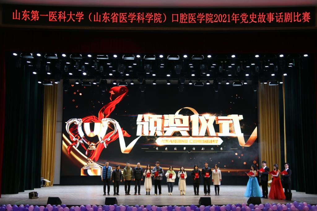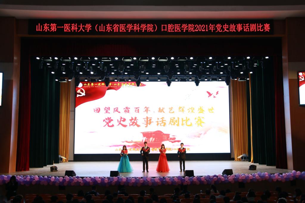 为庆祝建党一百周年,重温革命传统和红色文化。11月25日晚,口腔医学院在大学生活动中心礼堂隆重举办“口腔医学院2021年‘回望风霜百年,献艺辉煌盛世’党史故事话剧比赛”。校(院)党委统战部王长发,校(院)党委宣传部杨鑫,校(院)教务部张燕堂,校(院)医院管理与疾病控制部吕虎晓和国际教育学院刘静等老师担任此次大赛的评委。