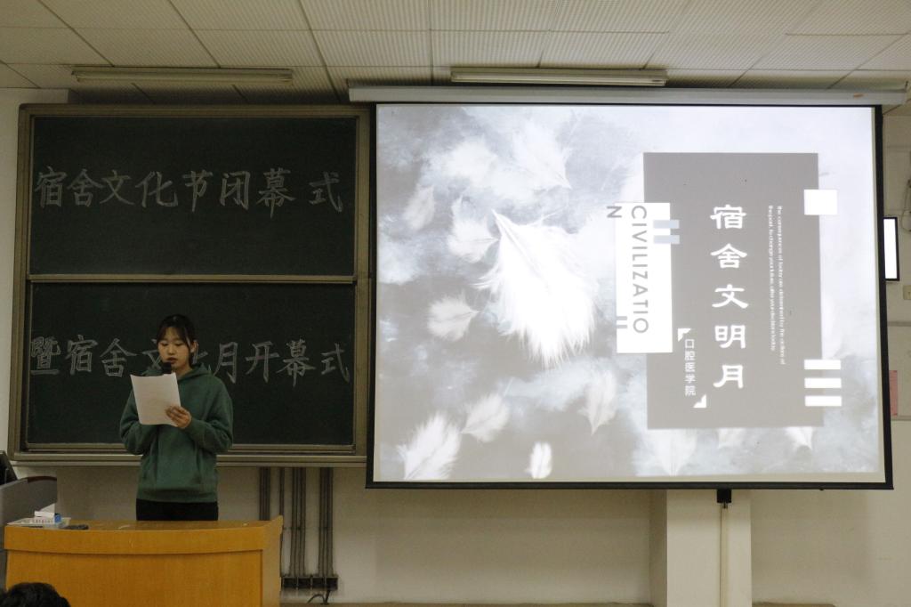 为创建和谐寝室、安全寝室,营造团结、进取的良好生活氛围,把寝室打造成建设和谐校园的“文明窗口”,展现新时代大学生的精神面貌,口腔医学院举办了第七届宿舍文化艺术节系列活动。2021年12月3日,口腔医学院宿舍文化节闭幕式暨宿舍文明月开幕式在教学南楼c1001顺利举办。口腔医学院学生会成员和学院各宿舍长参加此次活动。