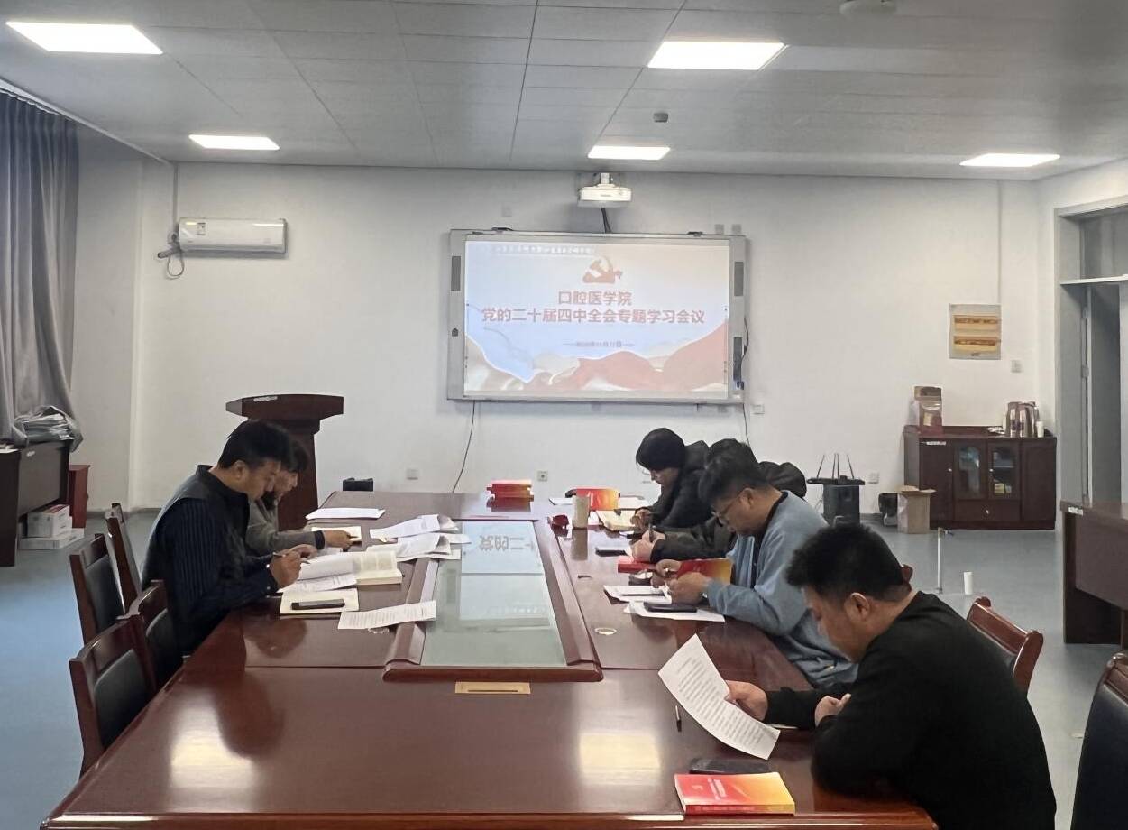 11月17日,口腔医学院党委理论学习中心组召开党的二十届四中全会精神专题学习会,深入学习党的二十届四中全会精神。学院党委副书记谢建立主持,理论学习中心组全体成员参加了学习研讨。