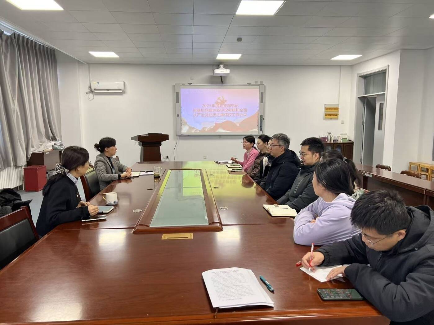 乔建红对各支部述职情况作集中点评。她指出,过去一年各党支部工作扎实、各有特色,但仍需在品牌凝练上下功夫。她强调,要持续推进“一支部一品牌”建设,引导各支部立足自身特点,找准党建与教学、科研、实习、学生工作的结合点,打造一批特色党建品牌,推动基层党建从“规范有序”向“特色鲜明”提升。