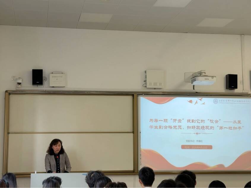 开班仪式的重要环节,学院党委书记乔建红为全体学员讲授专题党课。乔书记向入选的学员表示祝贺,勉励大家不仅要在口头上表态,更要将入党初心内化于心、外化于行,扣好入党路上的第一粒扣子。她结合医学生身份与学院实际,用鲜活案例阐释责任与担当,强调学医即选择奉献与坚守,积极分子要当好班级标杆、学院表率,树立正确观念,做到为民、务实、实干、长远。同时,她引用联合国教科文组织“四会”要求,寄语同学们学会求知、学会做事、学会做人、学会共处,成长为有温度、有本领、有担当的新时代口腔医学生。最后,乔书记介绍了学院发展蓝图,鼓励大家立足专业、规划未来,勤学苦练、精进技能,以优良学风助力学院专业建设与学科发展,在青春赛道上奋力奔跑。