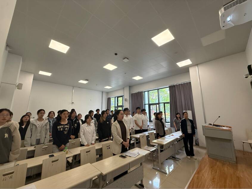 仪式在雄壮的《义勇军进行曲》中正式拉开帷幕,全体人员肃立,歌声铿锵,尽显青年学子对党和国家的赤诚与热爱。