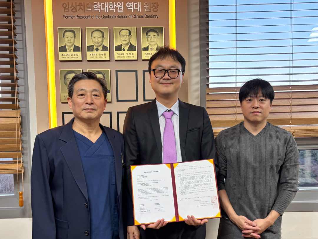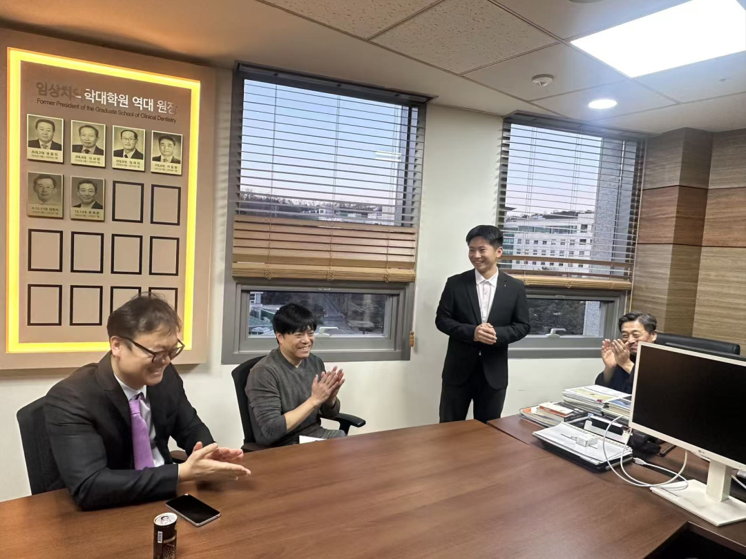 2026年1月8日,高丽大学举办欢迎口腔医学院访学项目开幕式,会上学院教师姜亨波博士受聘高丽大学客座教授。高丽大学临床口腔医学院院长、主任教授柳在俊(류재준 / Ryu ,Jae -Jun)与高丽大学临床口腔医学院主任教授沈智锡(심지석/ Shim ,Ji Suk)出席活动,学生代表谢易晓、孙璐、宋硕参加活动。